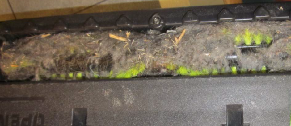 Sjekk om børsten på munnstykket er fri for hår og annet smuss som kan blokkere børsten. Se her eksempel på tilstoppet børste: