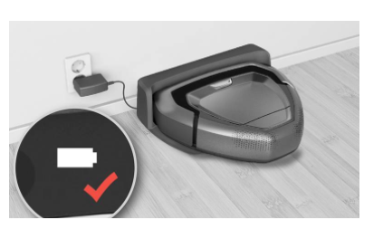 Trinn 1: Pass på at roboten er fulladet. (Batteri-indikatoren er hvit og ikke blinker.)