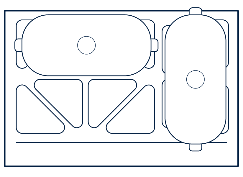 Plasser ovale eller ekstra lange kokekar, f.eks. stekeformer eller plancha-grill, vertikalt eller horisontalt i Bridge-kombinasjoner. Noen kokekar kan være for lange til å plasseres vertikalt og få en trygg plassering, da de vil dekke brukergrensesnittet. I dette tilfellet må du bare plassere pannen horisontalt.