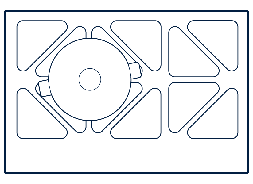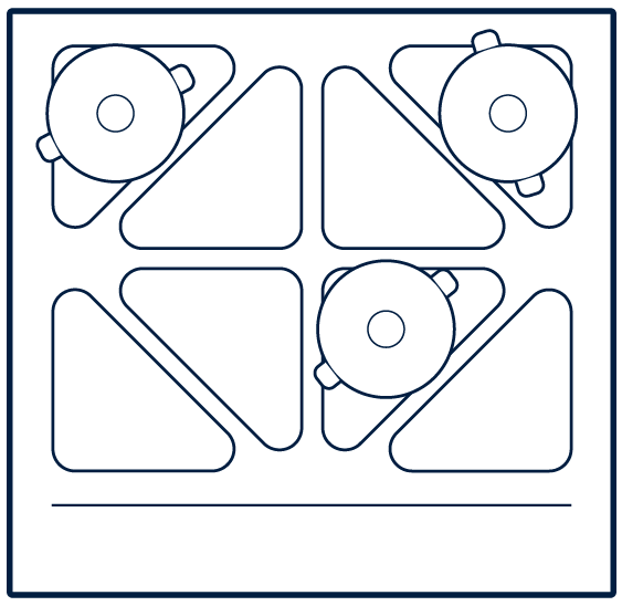 Plasser mellomstore kokekar med en bunn med diameter mellom 160 mm og 210 mm på et par trekanter. Avhengig av størrelsen på induksjonstoppen din: