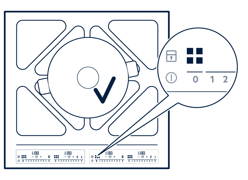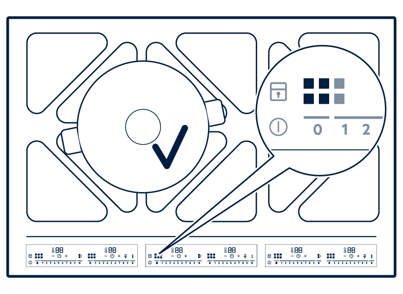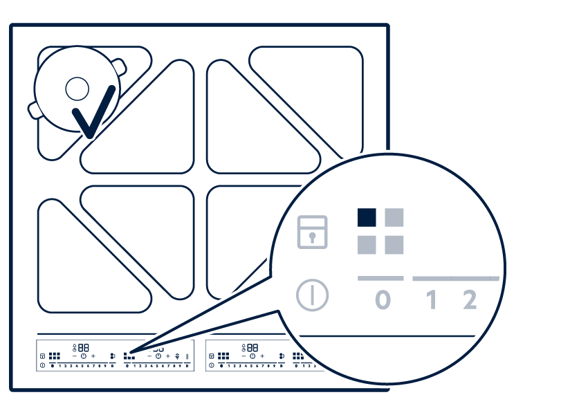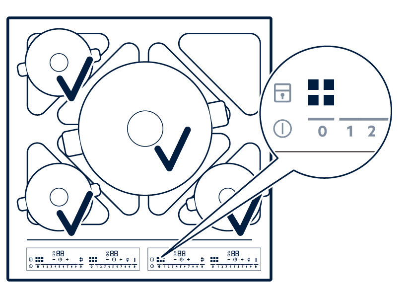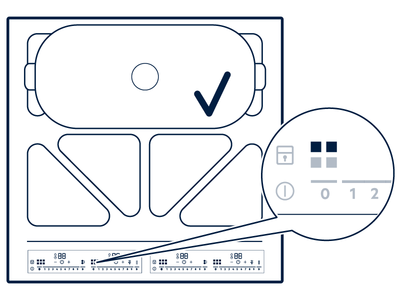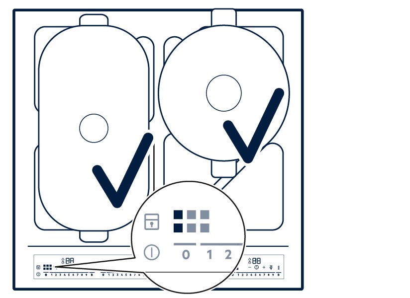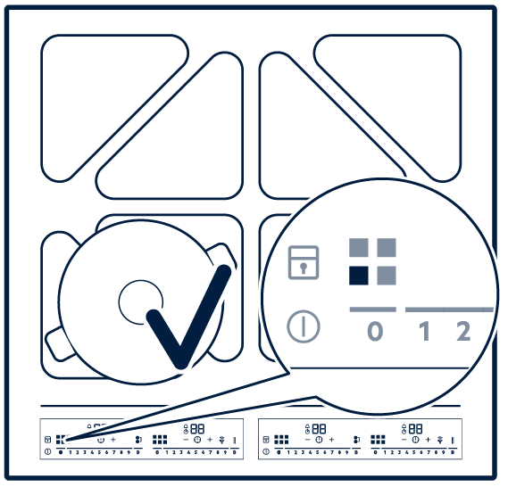 Når du plasserer kokekaret på en sone, lyser den tilsvarende Direct touch-kontrollen.